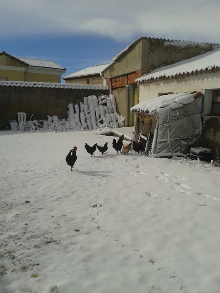 A casita que hace frío. Gallina negra castellana aguanta el frío y el calor. Segovia, Etreros