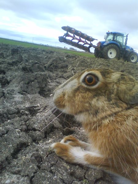 Liebre pendiente de las labores que hacen los agricultores. Cantiveros, Ávila