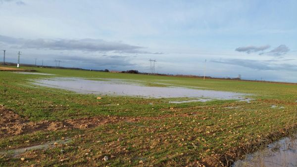 Trigo un poco inundado por las lluvias. Moscas del Páramo, León