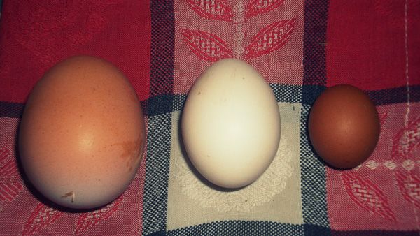Cada día sus gallinas dan unos huevos más grandes. Cigales, Valladolid