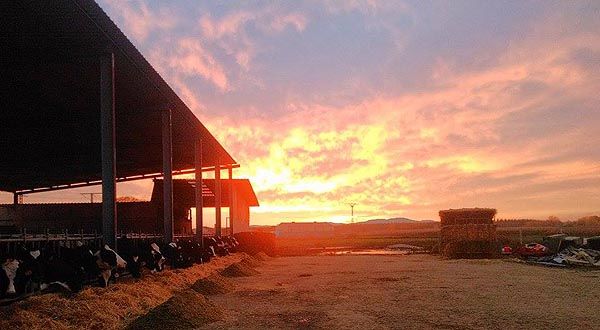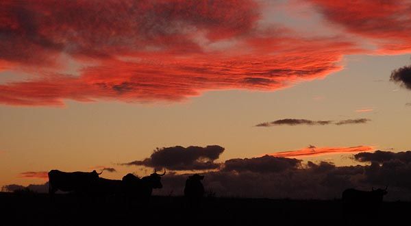 La puesta de sol con las nubes y las vacas. Olmedo de Camaces, Salamanca.