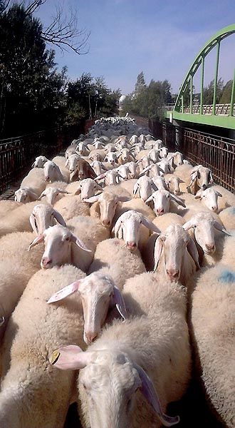 Ovejas pasando por el puente viejo. Soto de Cerrato, Palencia