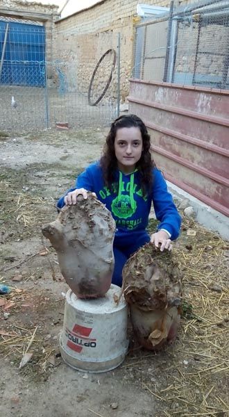 Remolachas de 15kg cultivadas por ella. Espino de la Orbada, Salamanca.