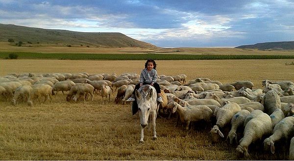 Su sobrina y el burro Claudio cuidando el rebaño. Vallasilos, Burgos.