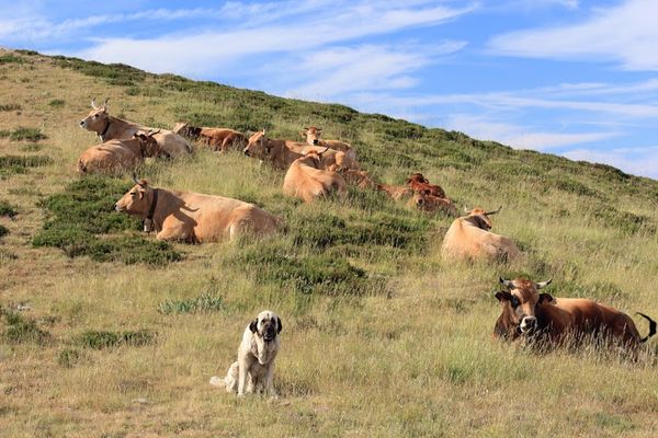Vacas pardas al amanecer. Bustillo del Páramo, León.