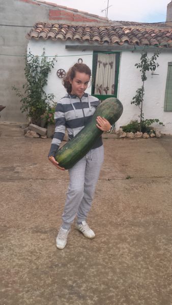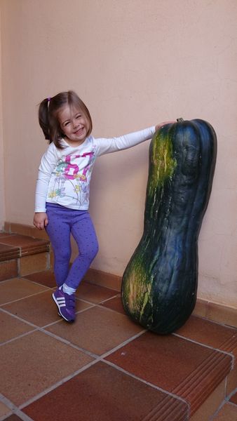 María con una calabaza de 20kilos. Villabrágima, Valladolid
