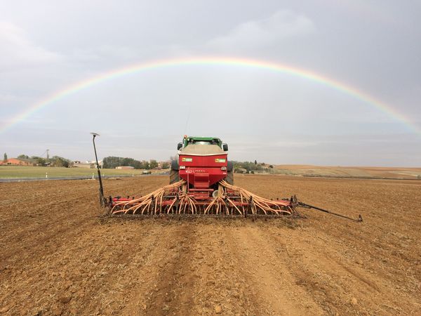 Sembrando bajo el arco iris en Valdunquillo, Valladolid