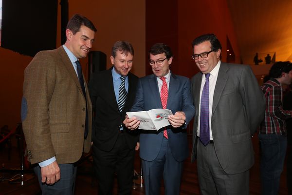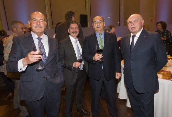 Julio López (2 D) y Aurelio Pérez (D), de Alianza por la Unidad del Campo, José María Sánchez, de Iberaval y José Manuel Negro, de RTVCyL, durante la Gala 5º aniversario RTVCyL en el Centro Cultural Miguel Delibes de Valladolid