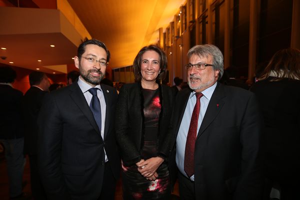 Silvia Clemente, Joaquín Da Silva, y Agustín González, en la Gala 5º aniversario RTVCyL en el Centro Cultural Miguel Delibes de Valladolid