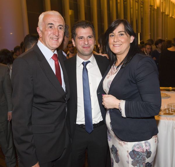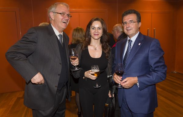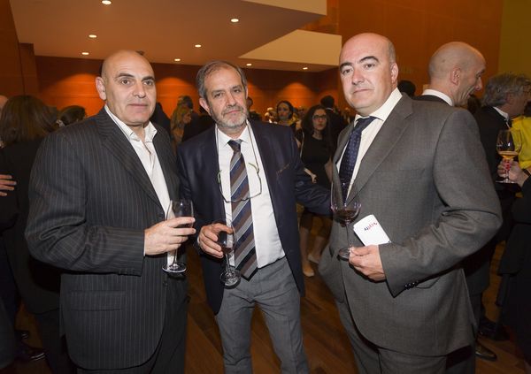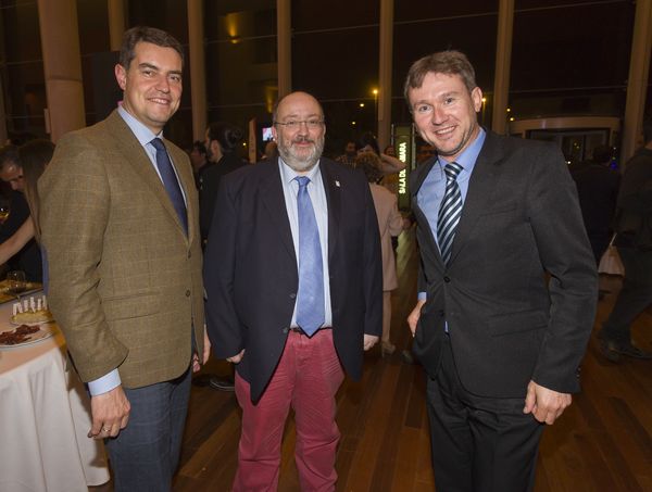 (I a D) Carlos Santoyo, Pedro Gutiérrez y Carmen Lorenzo en la Gala 5º aniversario RTVCyL en el Centro Cultural Miguel Delibes de Valladolid.