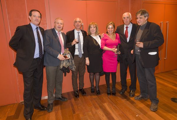 (I a D) Antonio Pablo, Jose Ignacio Hervás, José manuel González Palacín, Valentín García Fraile, Milagros de la Larna durante la Gala 5º aniversario RTVCyL en el Centro Cultural Miguel Delibes de Valladolid.