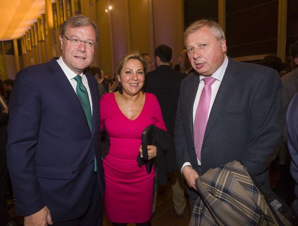 (I a D) Eduardo Álvarez, Josefa García Cirac y José María González en la Gala 5º aniversario RTVCyL en el Centro Cultural Miguel Delibes de Valladolid