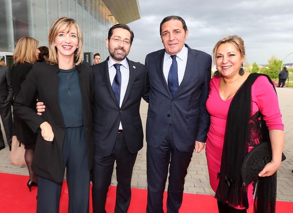 Gala 5º aniversario RTVCyL en el Centro Cultural Miguel Delibes de Valladolid. De I a D; la consejera de Cultura, Alicia García; el director general de RTVCyL, Eduardo Álvarez; el consejero de Sanidad, Antonio María Saez; y Rosa Valdeón