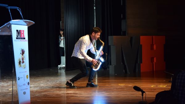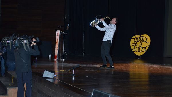 Alberto Soto, de Ajo de Sopas, agradece el premio al Establecimiento Revelación.