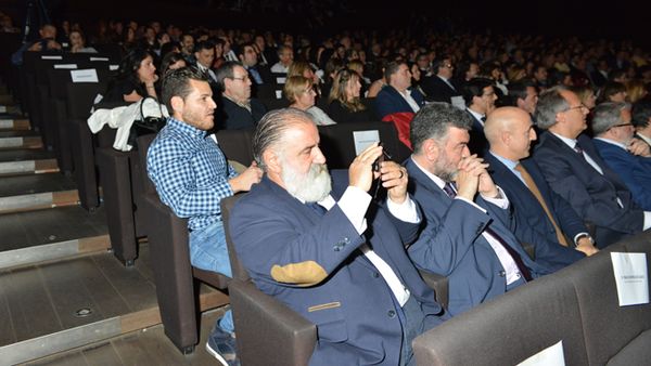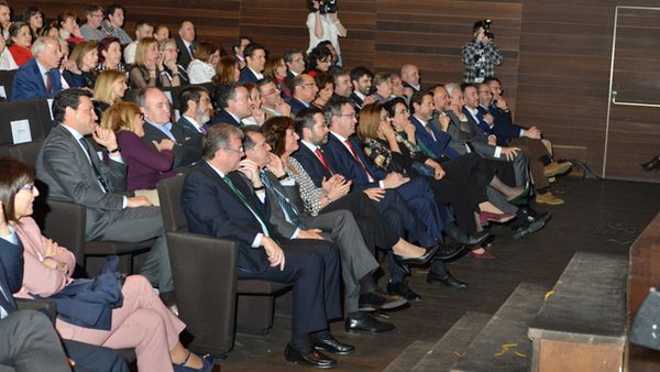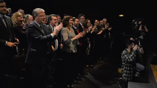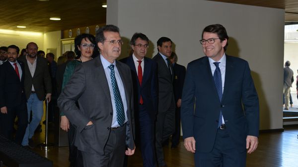 En primer plano, José Luis Ulibarri, presidente de Edigrup Media, y Alfonso Fernández Mañueco, alcalde de Salamanca. Detrás, Mª Teresa Mata Sierra, subdelegada del Gobierno en León; Juan Martínez Majo, presidente de la Diputación de León y Raúl de la Hoz, portavoz del Grupo Parlamentario Popular en Cortes.