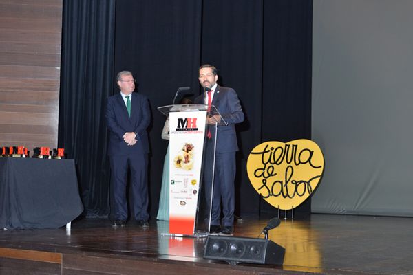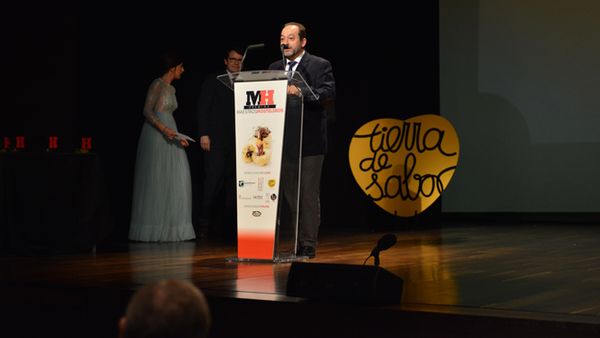 La consejera de Cultura y Turismo, Josefa García Cirac entrega a Alberto de la Cruz, Juan Carlos Jiménez y Miguel Ángel de la Cruz, de La Botica, el premio al Mejor Restaurante.