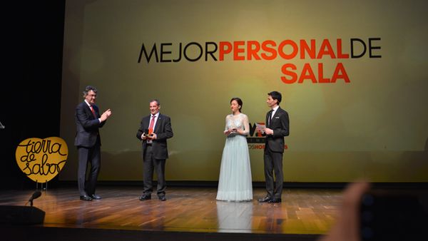 Pablo Martín, de Mesón de Cándido, agradece el premio al Mejor Personal de Sala.