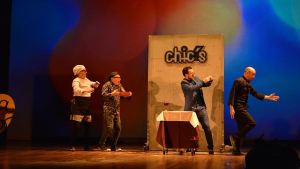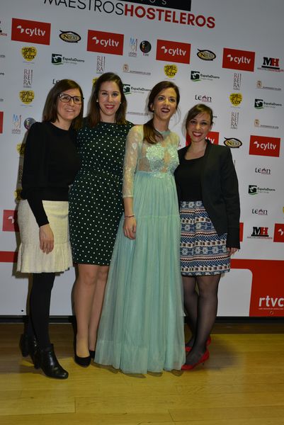 Chus Pedroso e Iria Gómez, del Departamento de Comunicación de RTVCyL, Blanca Fraile, presentadora de la gala y del programa Duelo de fogones, y Ana Lobato, Directora de Comunicación de RTVCyL.