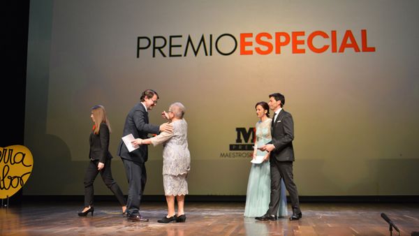Josefa Rodríguez Cirac y Antonio Silván entregan el premio homenaje a Carlos Domínguez Cidón que recoge su hijo Noé Domínguez Olloqui.