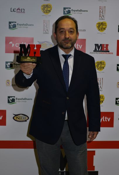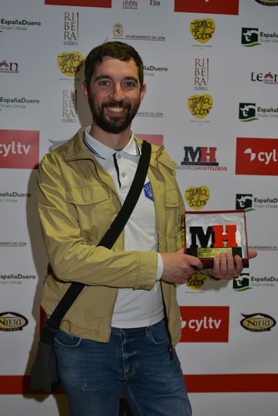 Noé Domínguez Olloqui recoge el premio en homenaje a su padre el cocinero leonés Carlos Domínguez Cidón.