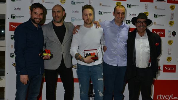 Miguel Sanz, director general de Ribera del Duero, y Antonio Silván, alcalde de León, entregan a Cristina García y Óscar Suárez de Bar Zielo el premio al Mejo Bar.