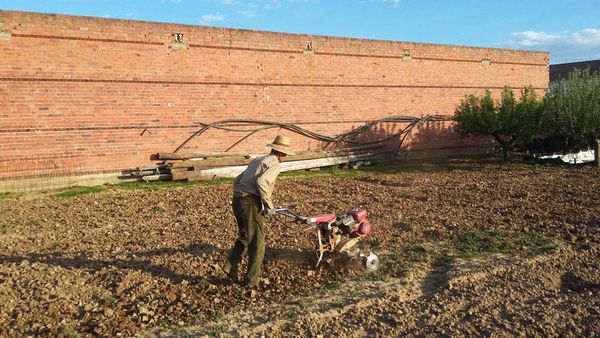 Saturio 91 años prepara la huerta para sembrar melones y sandías. Su nieta Silvia hizo la foto. Villarrabines, León