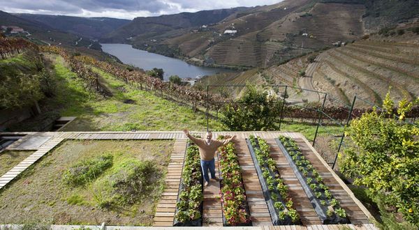 Abilio Tavares da Silva muestra con orgullo su huerto, enclavado junto a las viñas de la Quinta de Foz Torto en Pinhao