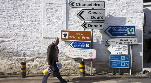Señalizaciones hacia las bodegas en Pinhao