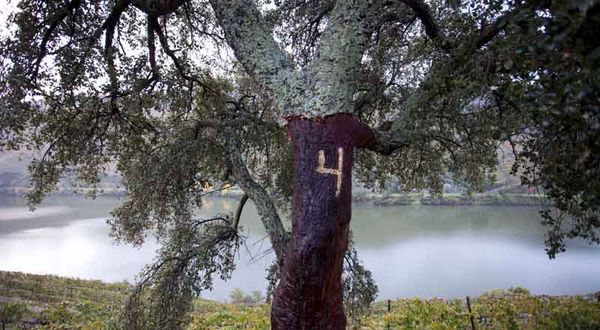 Alcornoque sobre el río Duero en la Quinta Nova de Nossa Senhora do Carmo en Pinhao, propiedad de la familia Amorim, los mayores productores de corcho a nivel mundial