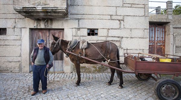 El señor Jose junto a su mulo en Vila Nova de Foz Coa, localidad donde se ubica la Quinta Ervamoira