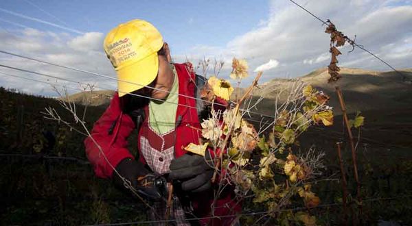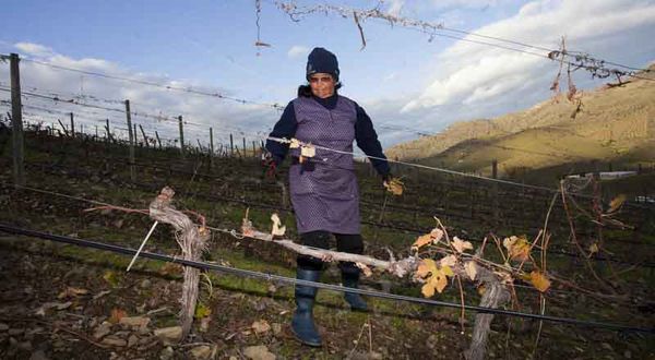 Trabajadora en las viñas de la Quinta Ervamoira en Vila Nova de Foz Coa