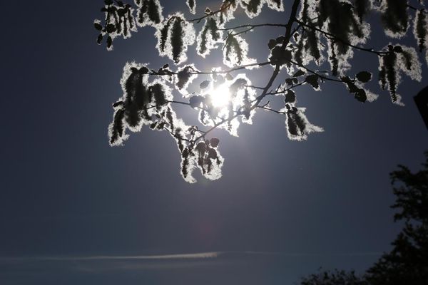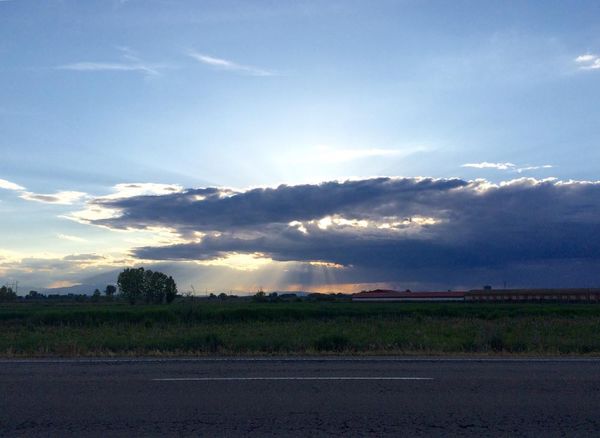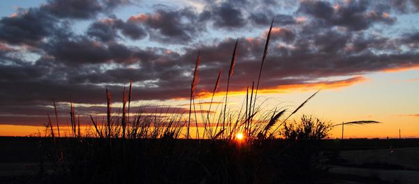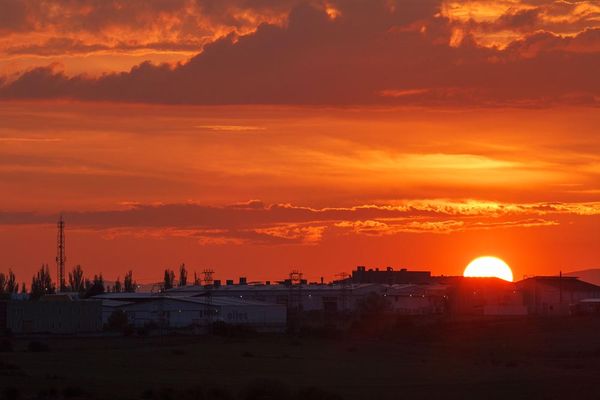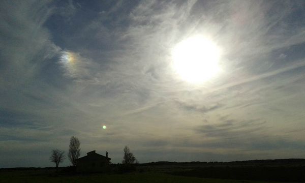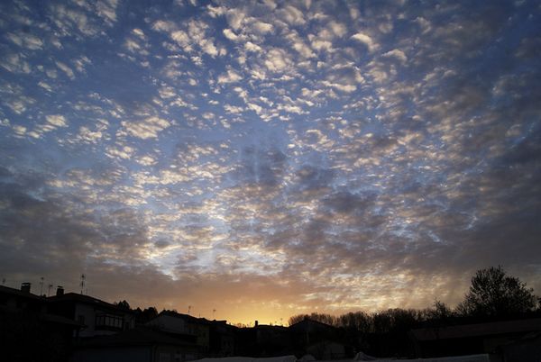 Cielo nuboso, el sol en el horizonte. Soria