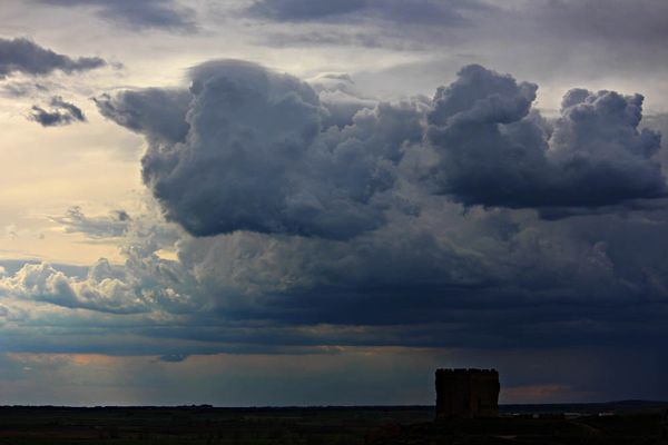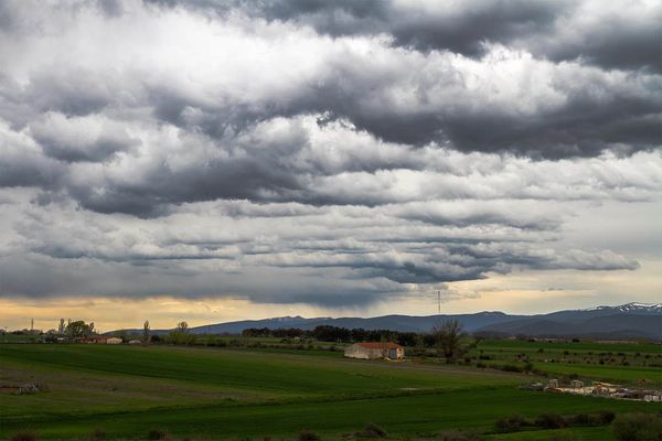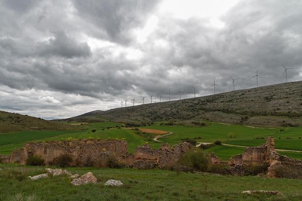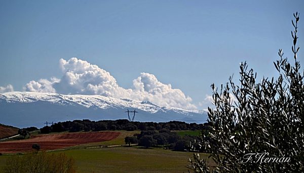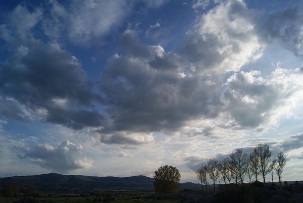 Cielo nuboso, despoblado y sierra de La Pica. Aldealpozo, Soria