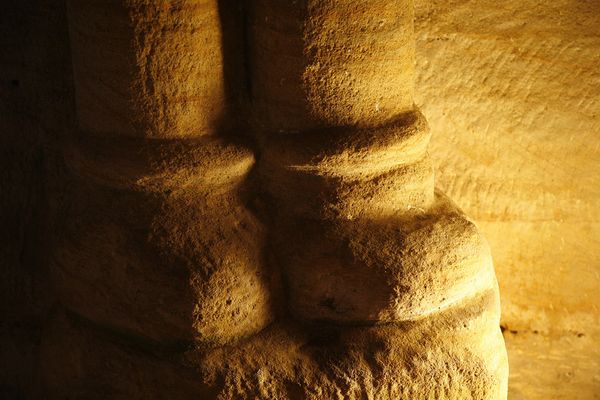 Detalle de una doble columna de la iglesia rupestre de Olleros de Pisuerga, Palencia