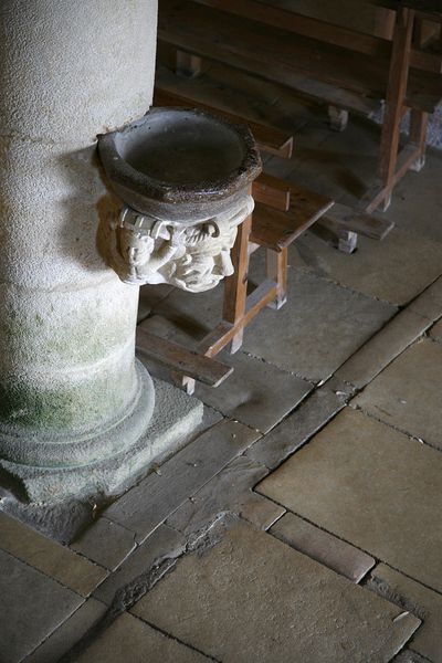 Detalle de la pila de agua bendita de la iglesia rupestre de Olleros de Pisuerga, Palencia