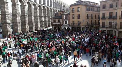 A la jornada se sumó además la Plataforma por la Escuela Pública, Laica y Gratuita de Segovia, durante con una concentración que congregó a más de 700 personas bajo los pies del Acueducto y a la que se sumaron los sindicatos para posteriormente recorrer el eje comercial de la calle Real para animar a los comerciantes a sumarse a la convocatoria de huelga general.