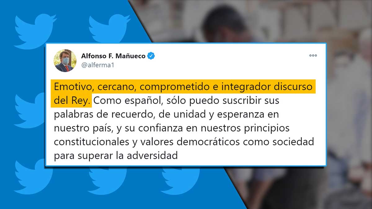 El presidente de la Junta, Alfonso Fernández Mañueco, ha calificado el discurso del Rey Felipe VI de "emotivo", "cercano", "comprometido" e "integrador".