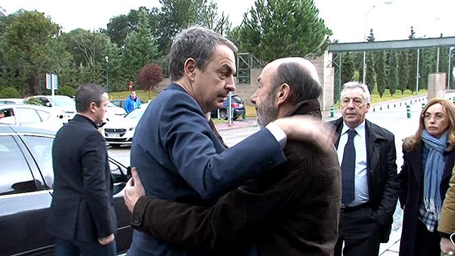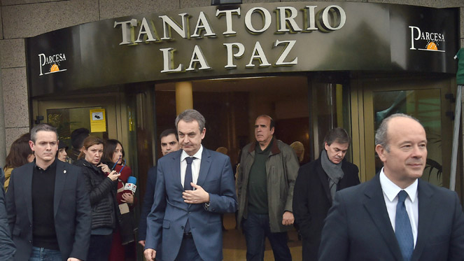 Zapatero acudió pasadas las 13 horas a la capilla ardiente instalada en el tanatorio La Paz de la madrileña localidad de Tres Cantos. A su llegada coincidió con el exsecretario general del PSOE Alfredo Pérez Rubalcaba.
