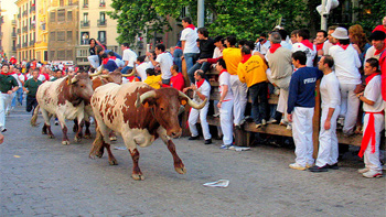La carrera ha seguido por la calle Mercaderes hasta la curva de Estafeta. Los toros la han pasado sin caerse y con bastantes huecos entre morlacos y mozos.