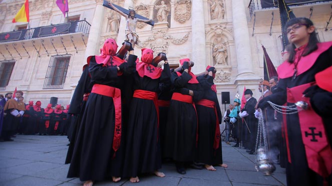 Después, la procesión continuó por la calle Arzobispo Gandásegui, plaza del Portugalete, hasta la Catedral, donde se rezó un Vía-Crucis. Desde allí, y por la calle Arribas inició el regreso hasta el Palacio de Santa de Santa Cruz.
