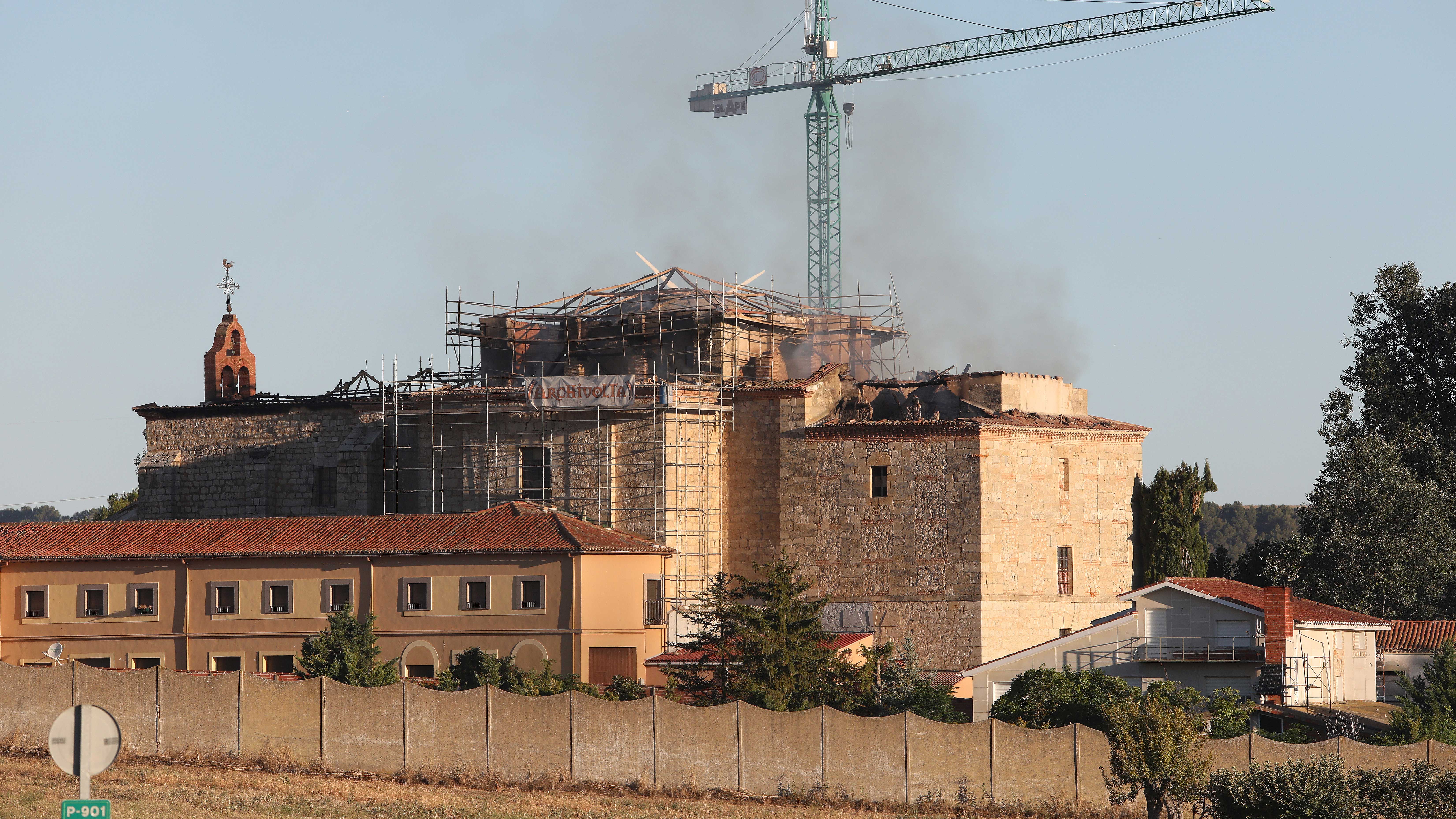 La presidenta de la Diputación de Palencia, Ángeles Armisén, aseguró este viernes que el incendio en la techumbre del Monasterio de Nuestra Señora de Alconada de Ampudia, Palencia, está controlado, después del trabajo de los bomberos desplazados de varios parques de la provincia. Eso sí, apuntó que había que esperar las horas "suficientes" para dar por finalizado el incendio. "Habrá que mantener alguna dotación del servicio de bomberos para certificar que no hay ningún riesgo", sentenció. Por su parte, el alcalde de Ampudia, José Luis Gil, confirmó que las llamas no habían afectado a la iglesia ni al interior de la ermita aunque lamentó que no se había salvado "nada" de la cubierta.