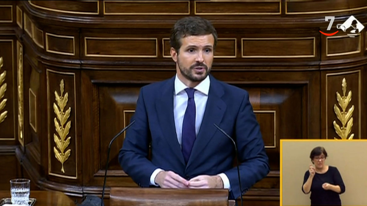 Pablo Casado afirma que los presupuestos no tienen credibilidad porque varios organismos internacionales rebajan las previsiones económicas del Gobierno. También, ha reclamado a Moncloa que haga público el acuerdo firmado con Bruselas con la condicionalidad para que España reciba los fondos europeos.