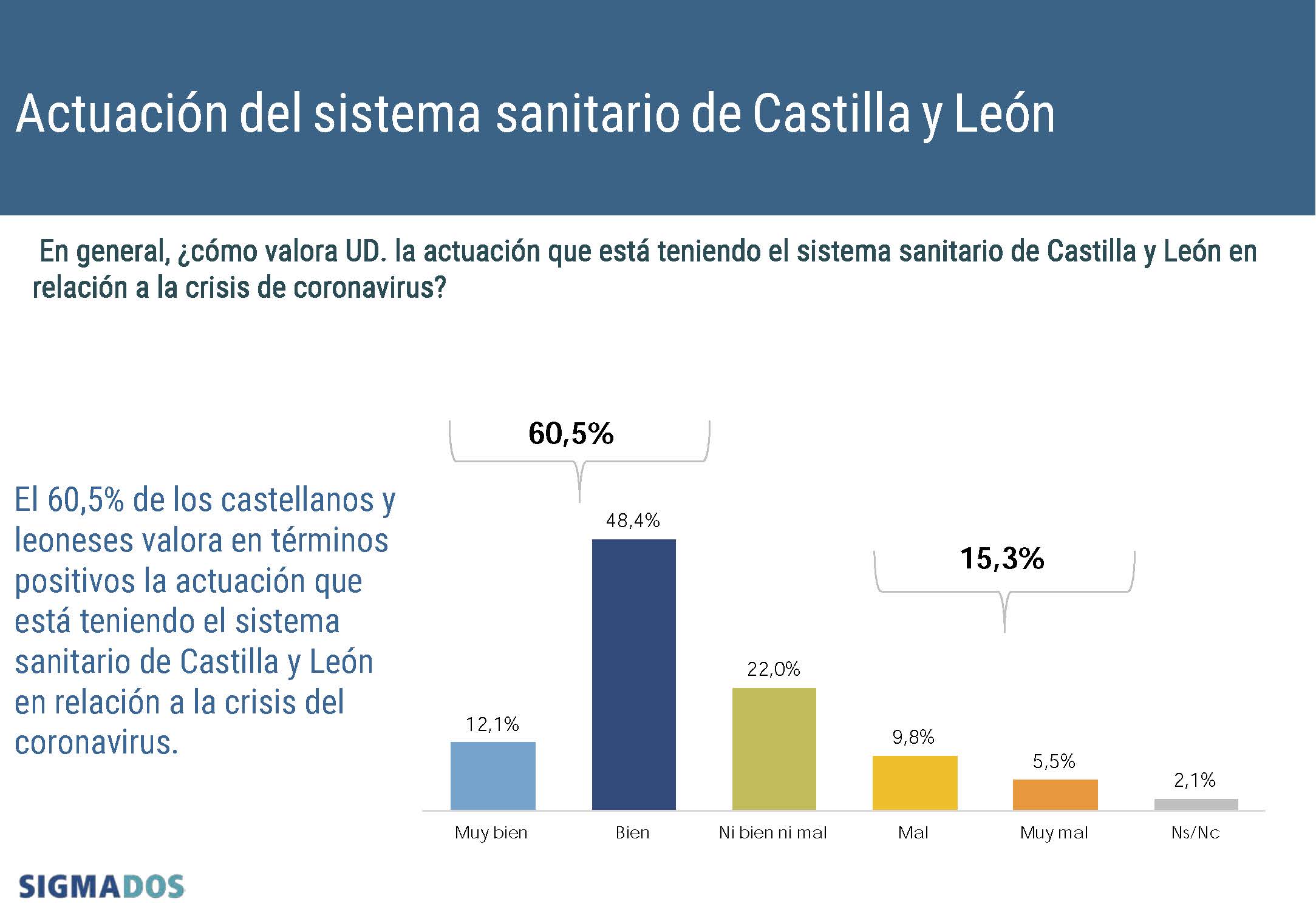 Dos de cada tres castellanos y leoneses, el 60,5% de los encuestados, valora en términos positivos la actuación del sistema sanitario de Castilla y León ante la crisis del coronavirus, tal y como se desprende del barómetro de Sigma Dos para CyLTV coincidiendo con el cierre del año. En este sentido, el 48,4% califica la gestión como buena y el 12,1% como muy buena. Por contra, el 15,3% opina que está siendo mala o muy mala.