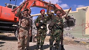 Entre gritos de "Dios es el más grande. Esto es por la sangre de los mártires" y el sonido de los disparos al aire, las excavadoras iniciaron las labores de destrucción del complejo de Bab al Azizyah.
