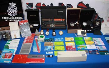 Con el preceptivo mandamiento judicial, los agentes efectuaron dos registros en domicilios de los ahora detenidos hallando en su interior tarjetas de crédito falsificadas, una lectora grabadora, ordenadores portátiles, documentación falsa, joyas, abundante ropa de primeras marcas y numeroso material electrónico.