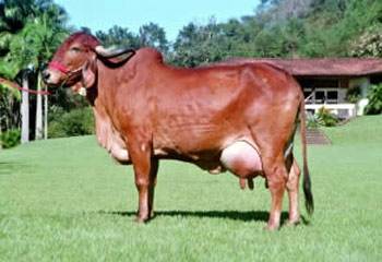 Según el doctor Lagombra, el Gyr es una buena opción animal que tiene las mismas características de cuerpo que el ganado Brahman, pero tiene la particularidad de que produce más leche y en condiciones de pastoreo puede producir de 8 a 12 litros de leche por día. El promedio nacional es de 4 a 5 litros de leche por día. Es difícil para una raza producir 12 litros de leche, que el Gyr puede producir en pastoreo y con poca cantidad de alimento adicional. La alimentación en pastoreo contribuye a que el costo de producción sea menor que los utilizados en el país.