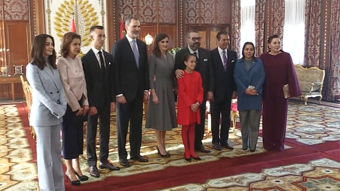 El Rey Mohamed VI ha acudido este miércoles al aeropuerto de Rabat, acompañado de su familia, para recibir a los Reyes de España, Felipe y Letizia. Mohamed VI ha estado acompañado de sus hermanas, Lala Meriem, Lala Hasna y Lala Asma; su hermano el príncipe Mulay Rachid y la esposa de éste y sus hijos el príncipe heredero, Mulay Hassan, de 15 años --a quien el Rey concede un papel cada vez mayor en la representación internacional del país-- y su hija pequeña, Lala Khadija.