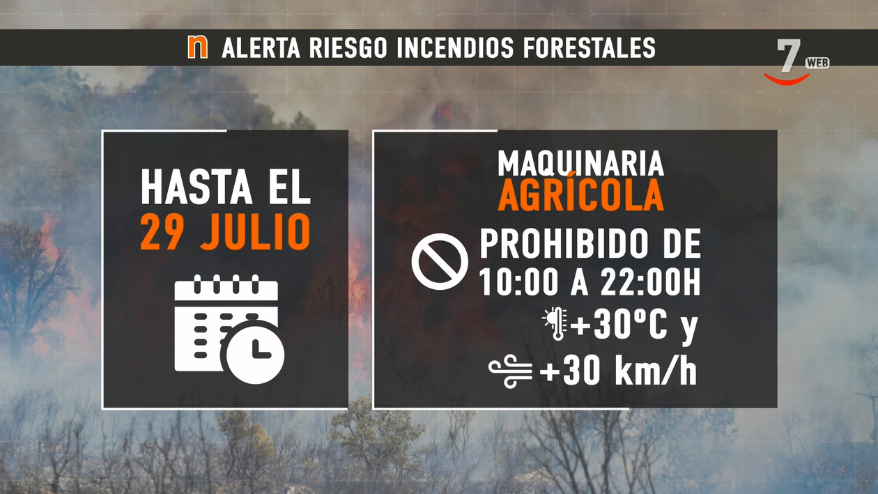 La Resolución prohíbe el uso de barbacoas y el uso de los ahumadores en la actividad apícola; suspende las autorizaciones de uso del fuego y de fuegos artificiales; y prohíbe el uso de maquinaria que en su funcionamiento habitual despide chispas como sopletes, soldadores, radiales en el monte y franja de 400 metros de terreno rustico que lo circunda.