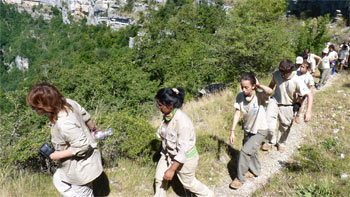 Atrás quedan tres jornadas de expedición por Navarra, tierra en la que los 225 participantes de la Ruta Quetzal BBVA han conocido los orígenes del religioso Martínez de Compañón. A escasos kilómetros de la casa en la que vivió, en la localidad de Cabredo, se extiende el Parque Natural de Urbasa-Andía. Un paisaje fascinante de 21 hectáreas por el que han recorrido 25 kilómetros con sus pesadas mochilas a sus espaldas durante 11 largas horas.