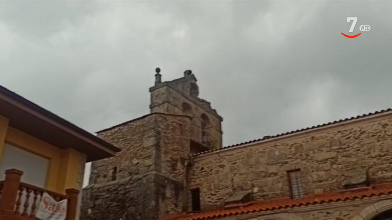 Un rayo caído hoy sobre la iglesia de Nuestra Señora de la Asunción, de Alcañices (Zamora), destruyó casi la mitad de la espadaña durante la fuerte tormenta registrada poco antes de las diez de la mañana.